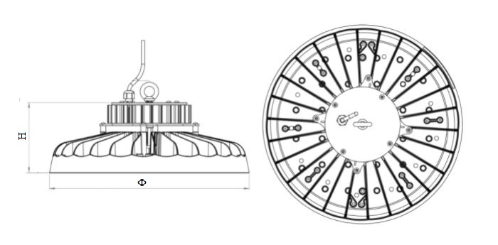 Industrial luminary IVY O is made from aluminium lacquered anthracitic. IVY O does not have a diffuser. Luminary's interesting shape and design come with high resistance to the tough environmental conditions in which the product will be working. IVY O features high lighting efficiency and other technical parameters. All these characteristics make IVY O one of the most economical models on the market. The colour temperature is 4000 K and colour rendering index CRI > 80. The luminary is ready to work in temperature that fluctuates from -30°C to even +45°C. The cooling radiator efficiently eliminates unnecessary heat. It is possible to mount the luminary with the regulated bracket, which allows adjusting the lighting angles to our needs. IVY O is perfect for production halls/plants, warehouses and magazines. This luminary is a great choice for those clients, who appreciate the functionality and original look at the same time.