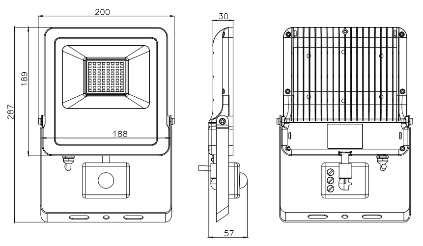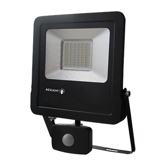 Zewnętrzny naświetlacz LED świecący szerokostrumieniowo. Oprawa wyposażona w czujnik ruchu. Oprawa przeznaczona do oświetlenia parkingów, terenów zewnętrznych, wejść przed budynkiem.